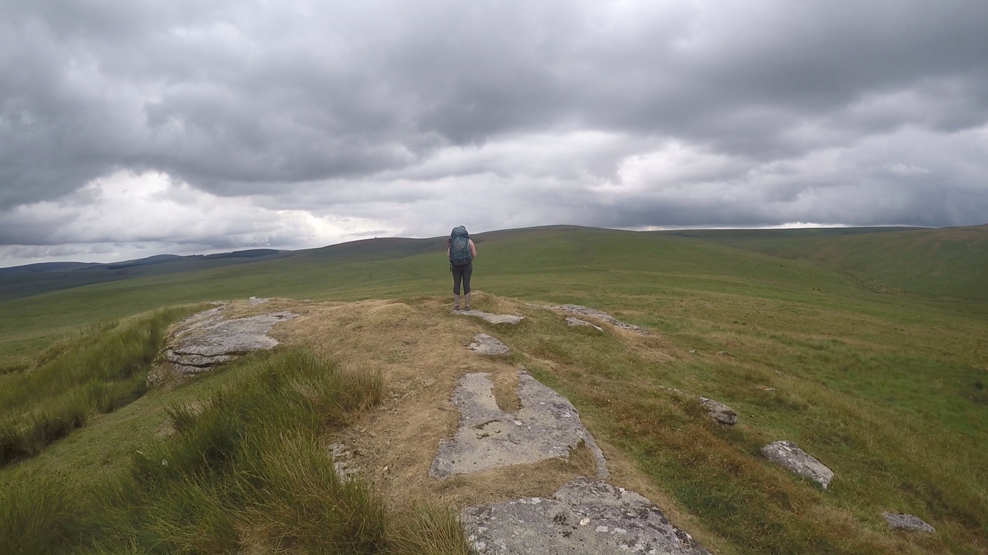 We woke early to what promised to be another boiling hot day. Our night had been an uncomfortable one. We had constantly been awoken by a shuffling sound around our tent. I had bravely sent Lisa to investigate, and she concluded it was nothing more than a curious hedgehog. The night’s discomfort was immediately forgotten by the beautiful morning light and call of bird song. Packing away our tent as swiftly as we could, we hurried back to the path, eager to make considerable progress before the heat of the day took its toll. Today would be our longest in terms of miles to cover. We reached the Fernworthy Reservoir and followed a smooth road around its southern side. A free-flowing stream allowed us to fill our bottles, and the path left the forest on its eastern edge. Our map indicated we were near to the route of the Two Moors Way, which hugs the eastern side of Dartmoor. However, we desired to take a more central route, and instead followed a lightly trampled route upwards towards a cairn near to a raised embankment named King’s Oven. On the way we passed through a long stone row, a man-made avenue with a significance we would never discover.
