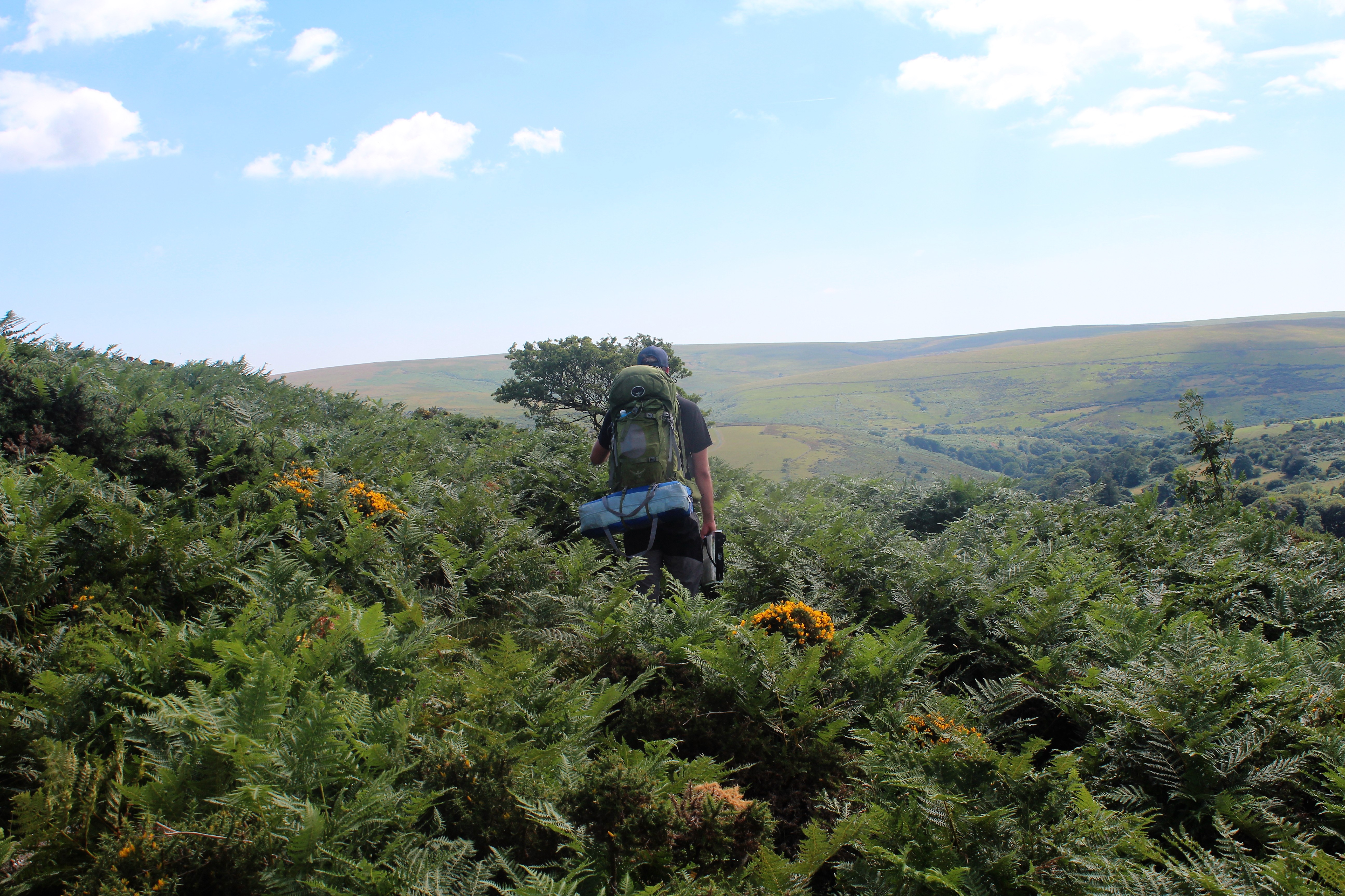 The Moor appeared to have been bleached yellow as the unforgiving July sun burnt down upon us. We had set off from the village of South Zeal and after enjoying the temporary respite offered to us by an avenue of trees, we now faced the wide expanse of Dartmoor. We planned to walk from north Dartmoor to the south over three days, wild camping each night. Navigation would largely be down to us, though we would occasionally join up with the southern portion of the Two Moors Way. The prospect of our route not being governed by a designated path promised adventure and discovery. Within the first ten minutes of walking a large bird of prey, possibly a Buzzard, had been sighted on a stone wall just ahead of us, and of course, the iconic Dartmoor ponies were spotted resting in any shade they could find.