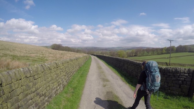 Once again I had powered through my snacks with still half a days walking remaining, so the sight of a road and pub was a welcome one. After a quick lunch and restocking of supplies e.g.chocolate bars and we were off again. An easy going stretch of several miles was all that stood between us and the intriguingly named settlement of Mankinholes, our destination for the night. Passing even more reservoirs, the novelty of walking on a well maintained and flat path was a welcome one. The path at this stage takes a sharp turn to the east, and our first sight of Stoodley Pike monument drove us onwards. It was now a lovely afternoon, warm and clear with wide-ranging views. From our high vantage point, we had a stunning view. The looming presence of Stoodley Pike ahead of us, and the hamlets of Mankinholes and Lumbutts looking resplendent down in the valley. It was a magnificent climax to a day of largely featureless landscapes. With the sun shining we made our way steeply down to our hostel for the night. The volunteer-run YHA at Mankinholes was an absolute treat, a great place to stop for hikers and cyclist after a long day exploring the hills.