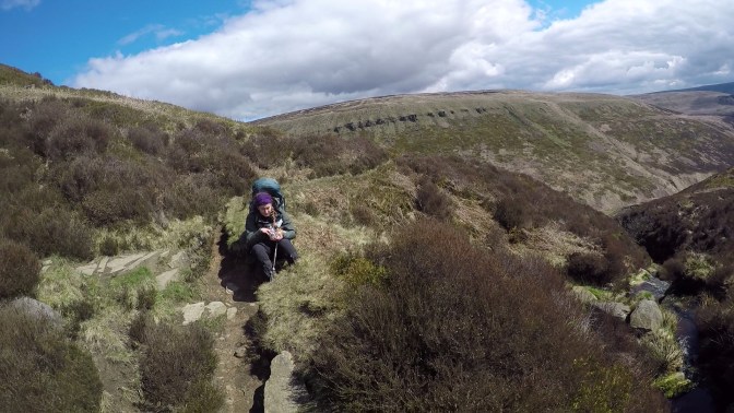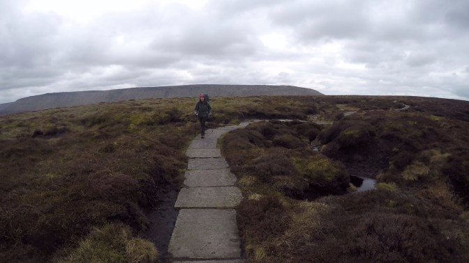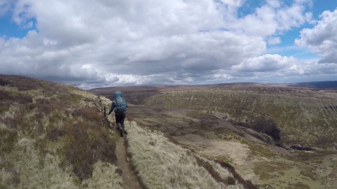 A new day dawned and after a luxurious shower and a basic breakfast, we were back on the trail. I was not feeling overly refreshed by the previous night’s rest, and the Pennine Way was not in a forgiving mood. After briefly walking back the way we came the path turned north up towards a near mirror image of what we had descended the evening before. The wind began to pick up the higher we rose, viciously channelled towards us by the hills. Despite this and the precarious path, it was essential to turn around and survey the impressive landscape from which we had come the previous day. The battle with the wind and the narrow path eventually ended as the landscape, at last, began to level out and open up to wild moorland, with Black Hill ahead of us. The path crossed many fords and for a time ran alongside a free-flowing stream. We had only seen three other hikers the whole morning, and now another skipped past us, fleet of foot in lightweight shoes and a day pack. Our packs of 15kg had weighed heavily on us throughout the trek, and we eyed the runner enviously as he disappeared into the distance.