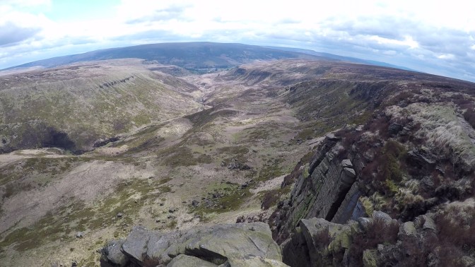 We began at the traditional start point by The Old Nag’s Head pub and were quickly shaking off the cobwebs as we passed through Upper Booth. The path took us between two steep ridges of hills and towards Jacob’s Ladder. Our OS map indicated this would be the steepest climb of the day. Taking the bridleway track to the left instead of the stone steps, we groaned as our limbs acclimatised to a day of strain. Pausing near the top of Jacobs Ladder, we turned to a stunning view that made the toil worth it. It was a magnificent valley, enhanced by the spreading of the clouds and beaming sunshine. Proceeding up the hill and past Edale Rocks, we were starting to hit our stride. This stretch of the Pennine Way is incredibly popular with daywalkers, and the small figures of numerous other hikers came into view as the ground began to level out. The path turned eastwards after Kinder Downfall. Pausing to huddle amongst the rocks with a stunning view of Kinder Reservoir, a nutritious and hearty lunch of noodles and green tea was prepared.