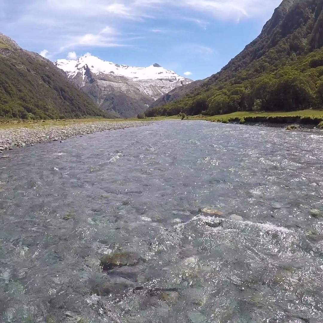After crossing a swing-bridge over the Blue Pools, we followed the Blue-Young Link Track, our leg muscles warming up and our backs adjusting to the weight of the heavy rucksack. One hour of easy walking brought us to the mouth of the Young River, as it flowed into the many branches of the Makaroa River. Turning right, our path narrowed as we entered the river valley. The path was perhaps two metres above the fast-flowing water, and orange posts at irregular intervals signalled to us we were walking in the right direction. Eventually, the path dropped down to the same level as the river. Looking ahead, we could see our current course would require us to plunge into the water. This was not an option. The river was deep, incredibly cold and moving rapidly. Drowning in rivers has been nicknamed “The New Zealand Death”. Writer Enga Washbourn addresses the regularity of settlers drowning in her superb history ‘Courage and Camp Ovens’. Whether it be due to fatigue, a misplaced sense of urgency or simply misreading the strength and depth of the river, death by drowning was common in the 19th and 20th centuries. Being confronted with wild and powerful rivers is both nerve-wracking and exhilarating. Unlike many controlled or canalised rivers in Britain, New Zealand rivers are a prime example of the power of nature unshackled by mankind.