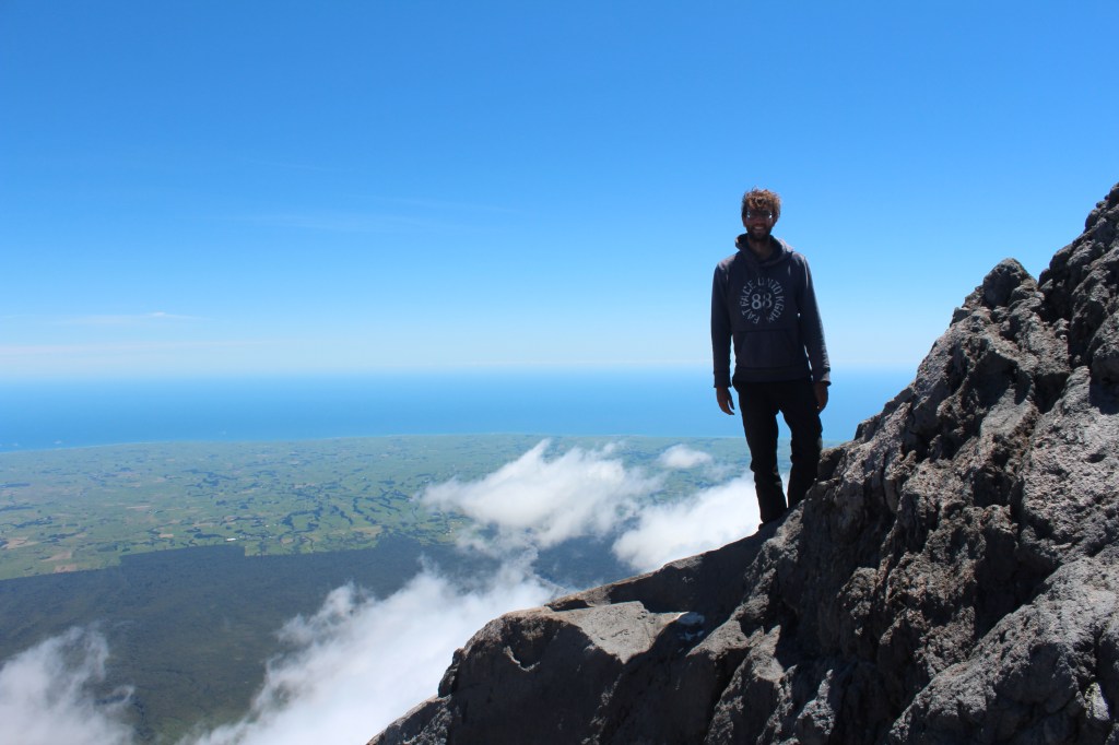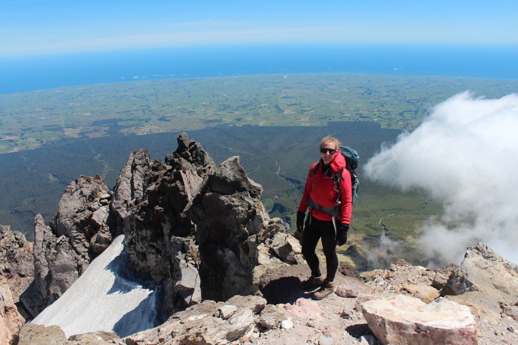 The next stage was The Lizard. This prominent rocky ridge leads hikers to a snow-filled crater that surrounds the summit. People were numerous here, resting or congratulating each other. The summit can also be reached from the eastern side of Taranaki, with the climb starting at a higher point at a small ski slope. It was obvious who had begun their journey from there, as they were not drenched in sweat of covered in dust from the scree.