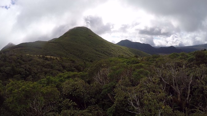 Leaving the hut early, our path soon brought us to a boardwalk. Ahukawakawa Swamp would have been nearly impossible to navigate without the boardwalk. We were walking away from Taranaki and towards the densely wooded Pouakai ranges. If these mysterious peaks were in another region of the country, they would be revered by both hiker and tourist alike. As it is, they sit quietly to Taranaki’s north-west, overshadowed, forgotten.