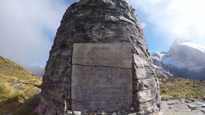 The main focal point on the pass is a large cairn crowned by a stone cross. This monument is dedicated to Quinton Mackinnon and Earnest Mitchell, who had discovered the alpine route in 1888. Assembling the monument had been an incredible, community-based effort. Members of the local rugby and sports club had painstakingly carried the heavy materials needed to the summit and assembled it in all conditions. It is a perfect example of New Zealander’s can-do attitude.