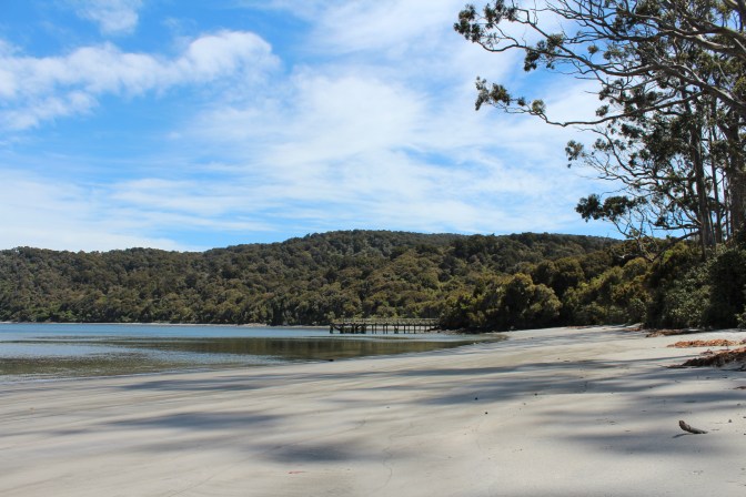 The track led us down from the cliffs to Maori Beach. It was low tide, and we waded through a creek to reach the golden sand. Rusted relics from the early 20th Century demonstrated this idyllic beach had at one point been a place of hard labour. This small community’s livelihood was based on timber milling. What had driven these people to Stewart Island? Despite the beauty of our surroundings, I suspected that to end up here, at the ends of the earth, may have been a desperate decision.