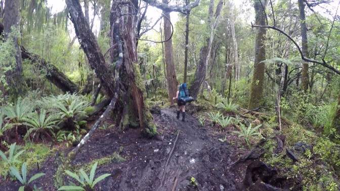 After passing North Arm Hut, the track turned south. Another track crossed our path, the North West Circuit. I had read about the trials and tribulations encountered on this epic 125-kilometre hike. Even in summer, knee-deep, sucking mud is regularly encountered. It is considered one of the most rewarding tracks in the country, with the promise of rare wildlife and solitude irresistible to the hardy few.